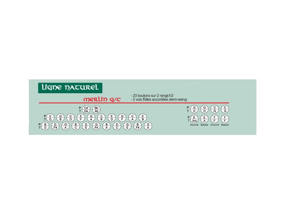 23 boutons sur 2 rangs 1/2, 2 voix Tremolo, 8 boutons au clavier basse.