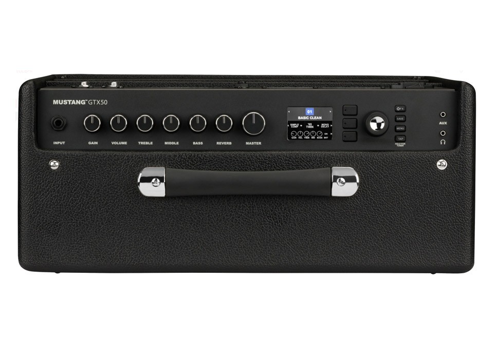 Le Mustang GTX50 offre un rapport qualité/prix tout simplement incroyable. Le tout nouveau baffle est plus robuste pour supporter les rigueurs des tournées ; un nouveau haut-parleur Celestion de 12” (305 mm) délivre une belle puissance sonore ; et avec un ampli, un haut-parleur et un baffle retravaillés, ce Mustang GTX sonne mieux que tous les amplis de sa catégorie. Les sorties ligne sur XLR et la boucle d’effets stéréo vous servent d’interface avec les systèmes de sonorisation, le matériel d’enregistrement et les processeurs externes. Un footswitch de sept boutons est également disponible en option. Il présente des sélecteurs de banques et d’effets, ce qui fait du GTX un ampli parfait pour la scène. Il permet également d’accéder au looper de 60 secondes intégré à l’ampli.