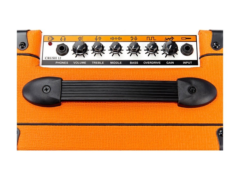 Dans la famille Crush, le Crush 12 est un ampli d'une puissance de 12 Watts, mais aussi le benjamin de la petite famille des New Crush. Ce combo, simple d'accès, propose tout de même un égaliseur 3 bandes et un bouton dédié à l'overdrive, qui permettent l'exploration d'une multitude de sonorités. La prise casque lui permettra, outre de jouer sans déranger, de connecter son ampli sur une source d'enregistrement pour disposer du son Orange, grâce au système CabSim qui émule les sonorités d'un 4x12 pouces. Le grain de saturation est ce qui se fait de mieux dans sa catégorie et il sonne bien même à faible volume.