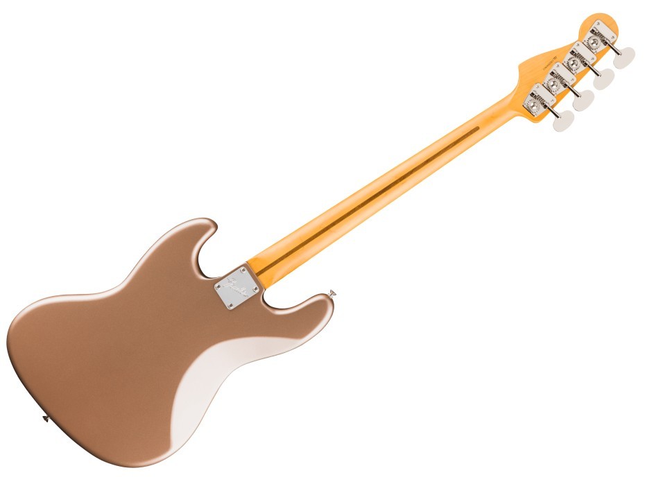 Sur le plan sonore, les micros Jazz Bass® ’62 Coastline™, inspirés des modèles historiques, délivrent profondeur, précision et présence. Le manche au profil « Modern C » assure un confort de jeu remarquable, tandis que les mécaniques Fender « Lollipop » offrent une tenue d’accord fiable tout en préservant un style rétro. Les finitions Fender® vintage subtilement patinées ajoutent enfin une touche esthétique raffinée qui séduira autant l’œil que l’oreille.