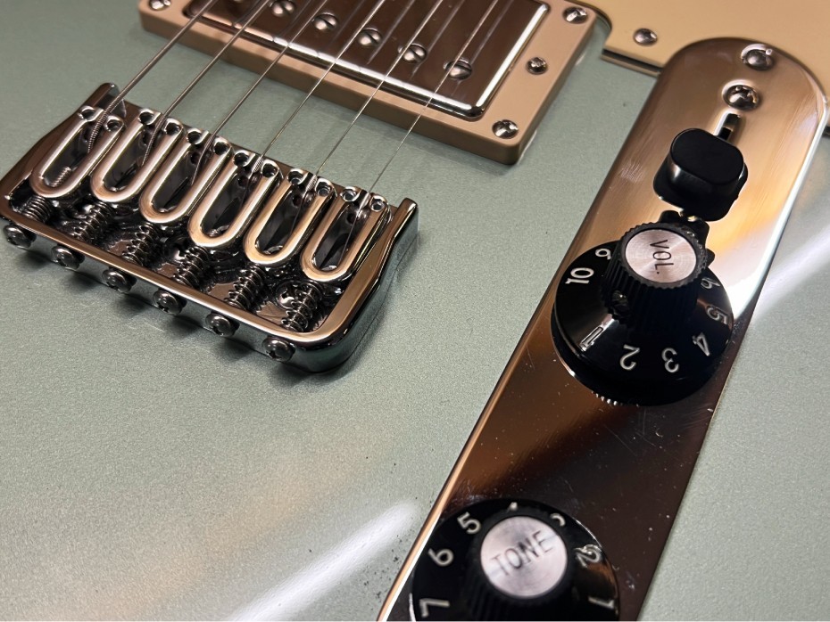 Elle se caractérise par une construction en manche vissé érable, un pickgard large, un contour de corps très doux, et un micro format large - type Humbucker, P90, filtertron - en chevalet.
