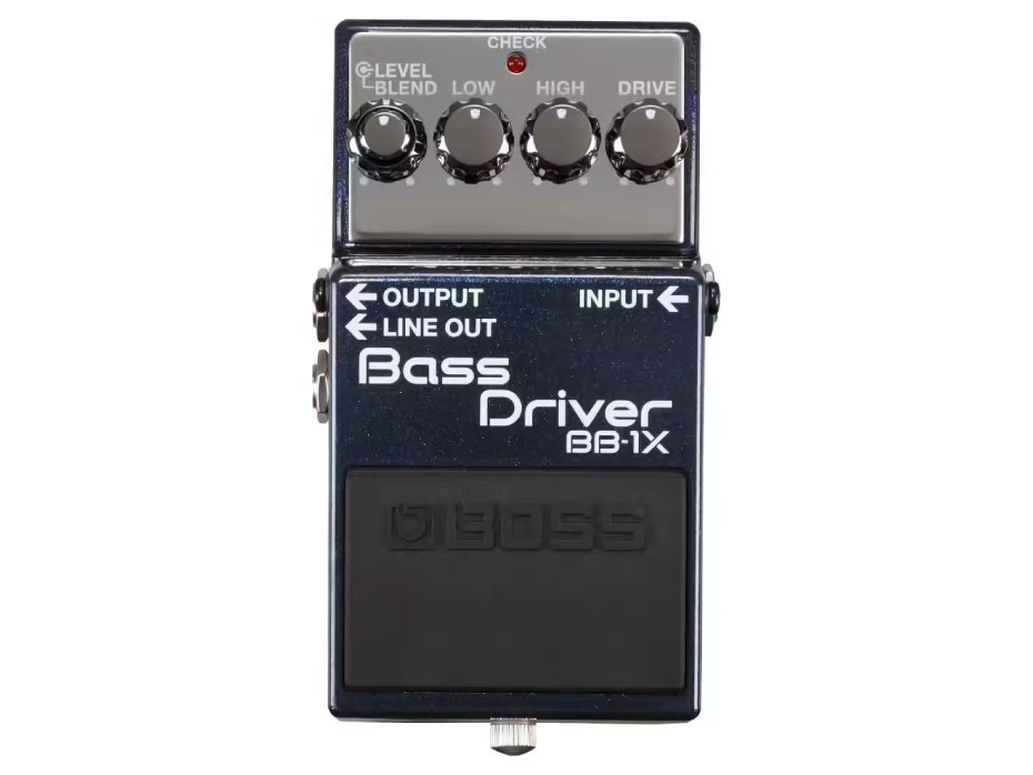 La BB-1X propose une ergonomie directe, centrée sur l'essentiel. Le réglage DRIVE fait évoluer la saturation d'un léger grain à une distorsion plus musclée, tout en gardant de la définition. BLEND est la clé pour les bassistes exigeants : vous doserez exactement la quantité de signal direct afin de conserver l'assise dans le grave et le " poids " des notes, même avec beaucoup de drive. L'égalisation LOW et HIGH ne se contente pas d'ajuster des fréquences : elle agit sur la perception du timbre et de l'attaque, utile pour passer d'un son rond et épais à un son plus incisif. Enfin, LEVEL règle le volume global pour équilibrer un son clean/drive ou pousser l'entrée d'un ampli.