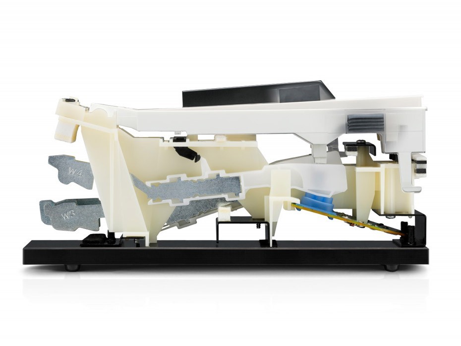 C'est le clavier de la mécanique Responsive Hammer III qui relie les superbes sonorités de pianos à queue du CN301 aux doigts du pianiste. Cette mécanique très appréciée est équipée de marteaux gradués qui reproduisent le poids des marteaux plus lourds des basses et plus légers des aigus d'un piano acoustique. Des contrepoids supplémentaires intégrés à l'avant de chaque touche noire et blanche permettent de contrôler naturellement le jeu lors des passages pianissimo. Pour une vitesse de répétition et une réactivité accrue, permettant ainsi d’obtenir un contrôle expressif du jeu staccato au jeu legato, le CN301 est équipé d’un système performant de détection des notes à triple capteurs. Les touches de la mécanique Responsive Hammer III sont dotées du revêtement de surfaces Ivory Touch de haute qualité, finition mate naturelle et attrayante à la fois lisse mais non glissante, tandis que le système Let-off reproduit la subtile résistance ressentie en jouant très doucement sur les touches d'un piano à queue, répondant ainsi aux attentes des pianistes les plus expérimentés. Enfin, la mécanique RHIII mise à jour du CN301 apporte des améliorations notables au niveau de la structure et des feutrines internes. Ces améliorations améliorent encore la sensation de stabilité lorsque les touches sont enfoncées, tout en contribuant à réduire le bruit de la mécanique lorsque celles-ci sont relâchées.